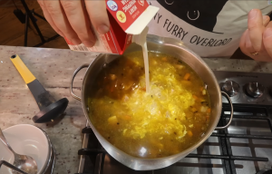 - Вылить в суп сливки, перемешать.